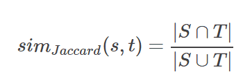 可以看出与Dice系数的定义比较相似。两种方法,将文本转换为集合,除了可以用符号分格单词外,还可以考虑用n-gram分割单词,用n-gram分割句子等来构建集合,计算相似度。